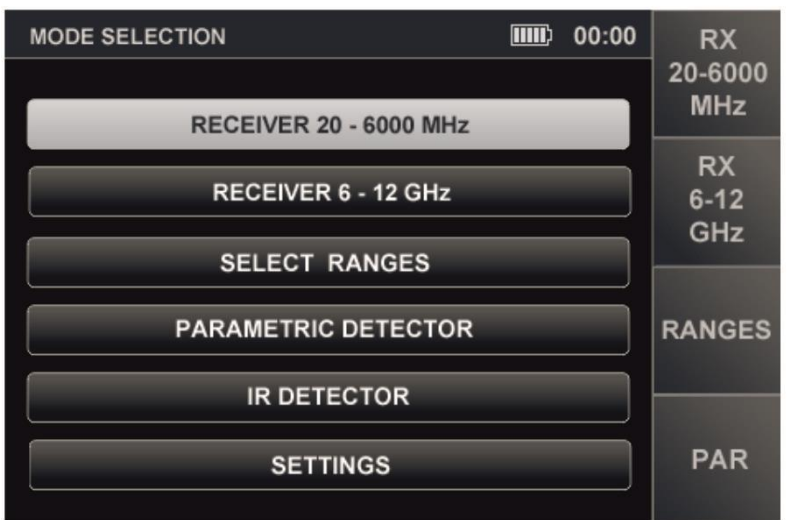 Spectrum Analyzer, selected ranges, parametric detector, ir detector.