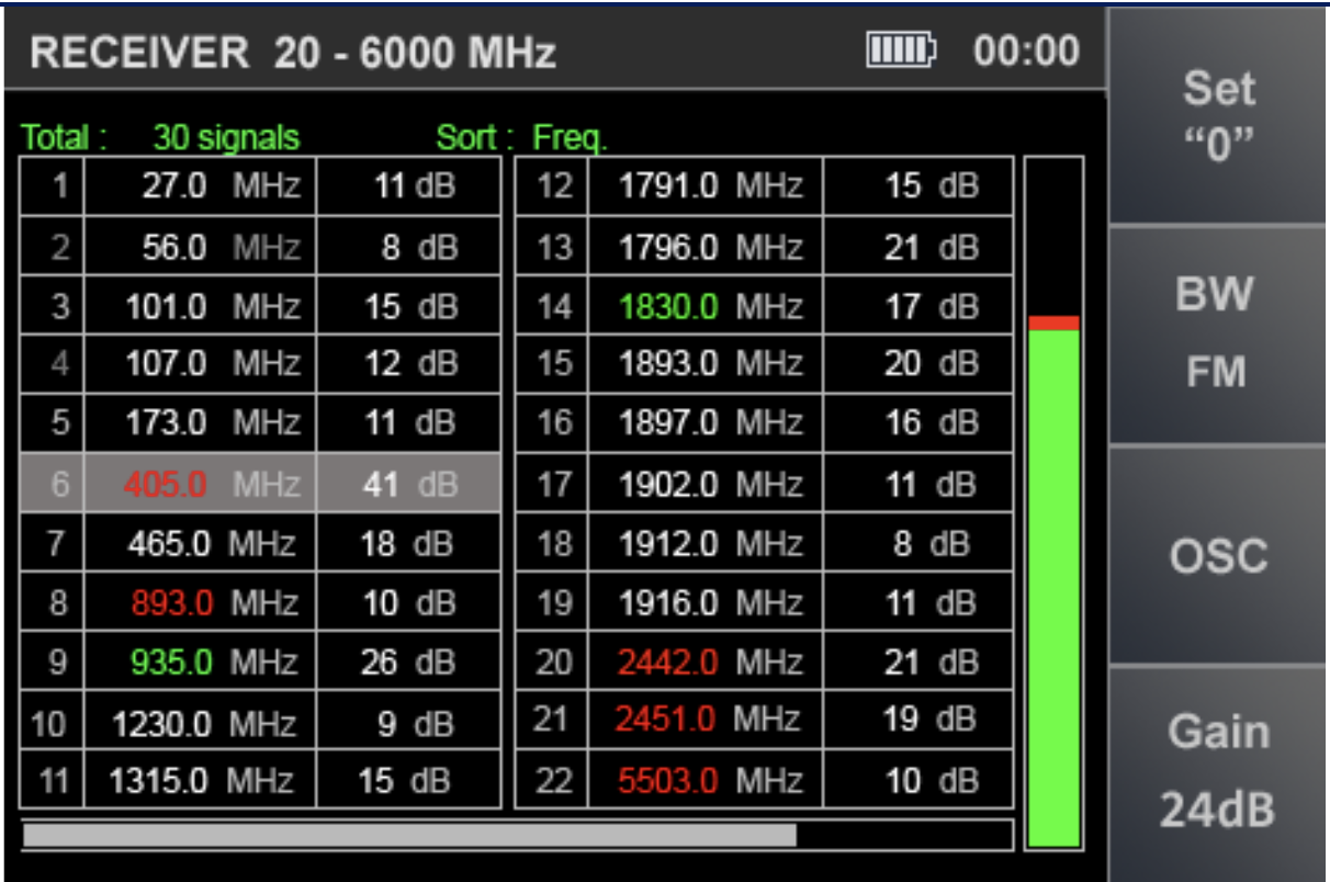 Es posible seleccionar una única frecuencia de listado de frecuencias y buscarla con el detector