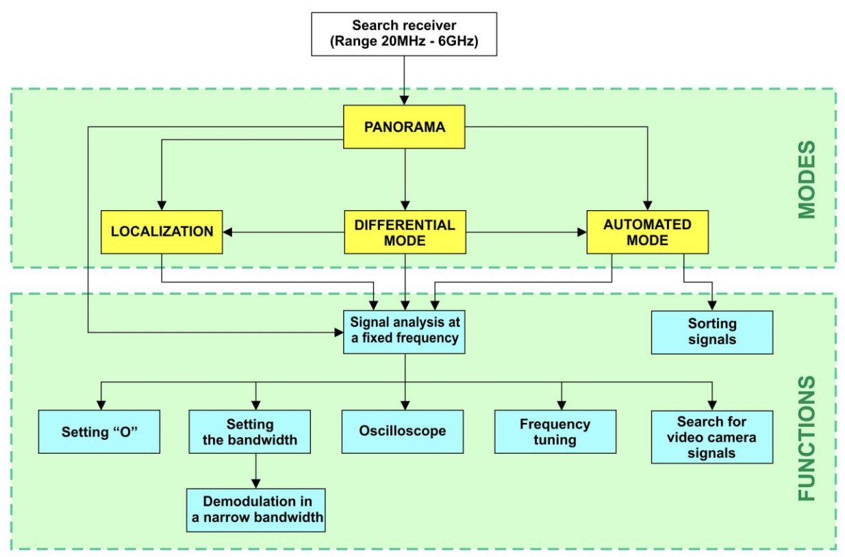 Potente dispositivo de detección multifuncional para la detección y localización de dispositivos de escucha. (HF, Radio Frecuencia, Infrarrojos y grabadoras de voz..